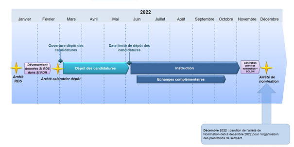 La nomination comme conseiller prud’homme fait l’objet d’un décret conjoint ministère de la justice / ministère du travail. Cette nomination est suivie, pour les nouveaux conseillers, de la prestation de serment (le conseiller prud’homal est assermenté) et de l’installation dans le CPH concerné, et de l’accomplissement des 5 jours de formation obligatoire à l’Ecole Nationale de la Magistrature (le non-accomplissement entraine la radiation).